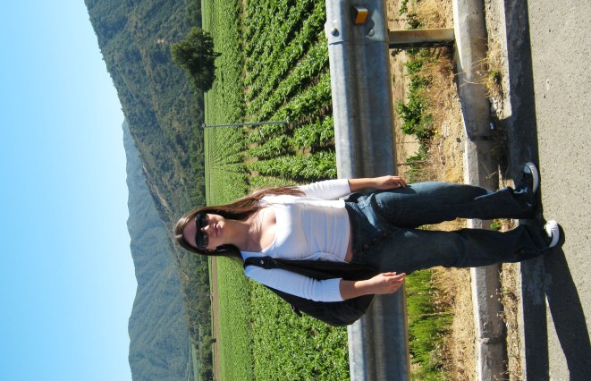 A paisagem do caminho é muito bonita e passamos pelo Valle de Casablanca, uma das mais importantes regiões vinículas do Chile, com vinhedos à beira da estrada. Fizemos uma parada para apreciar a vista e tirar milhares de fotos.