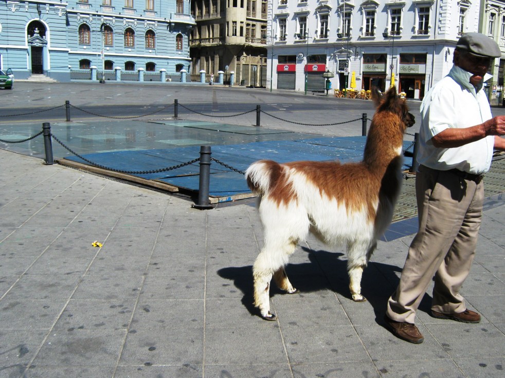 A praça é bem cheia de gente e também oferece vista ao porto. No centro havia um senhor com uma lhama tentando estorquir dinheiro dos turistas. Era só uma criança chegar perto para brincar com o animal que ele já cobrava os pais, era só você olhar para a lhama que ele já queria te cobrar.