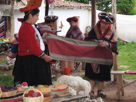 Além disso, esquenta muito porque os pontos artesanais são entrlaçados de maneira a tornar a malha impermeável para proteger do frio e da chuva. O preço também é bem mais alto, cerca de US$70-100 as blusas. Em uma visita que fiz ao povoado de chinchero, tive contato com as bordadeiras que preparam as blusas: