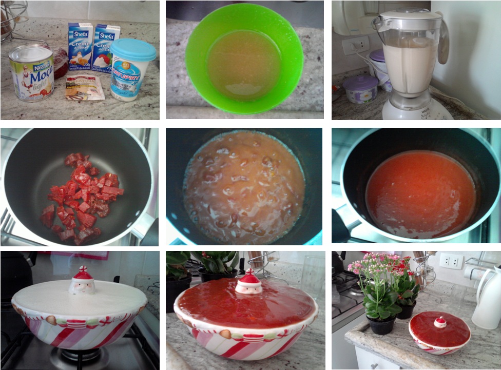 Bater tudo no liquidificador e colocar em uma tigela. Levar à geladeira por 40 min. Derreter um pedaço de goiabada e colocar o creme por cima. Levar à geladeira de novo. Acaba em 1 minuto!
