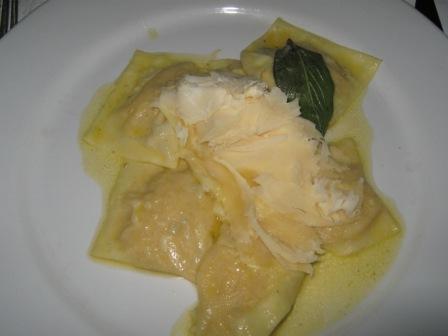 Mas essa costela é tão grande que dá para alimentar uns 6 homens famintos. Então fomos de lomo de cordeiro e sorrentinos de mascarpone e abóbora. Perfeitos.