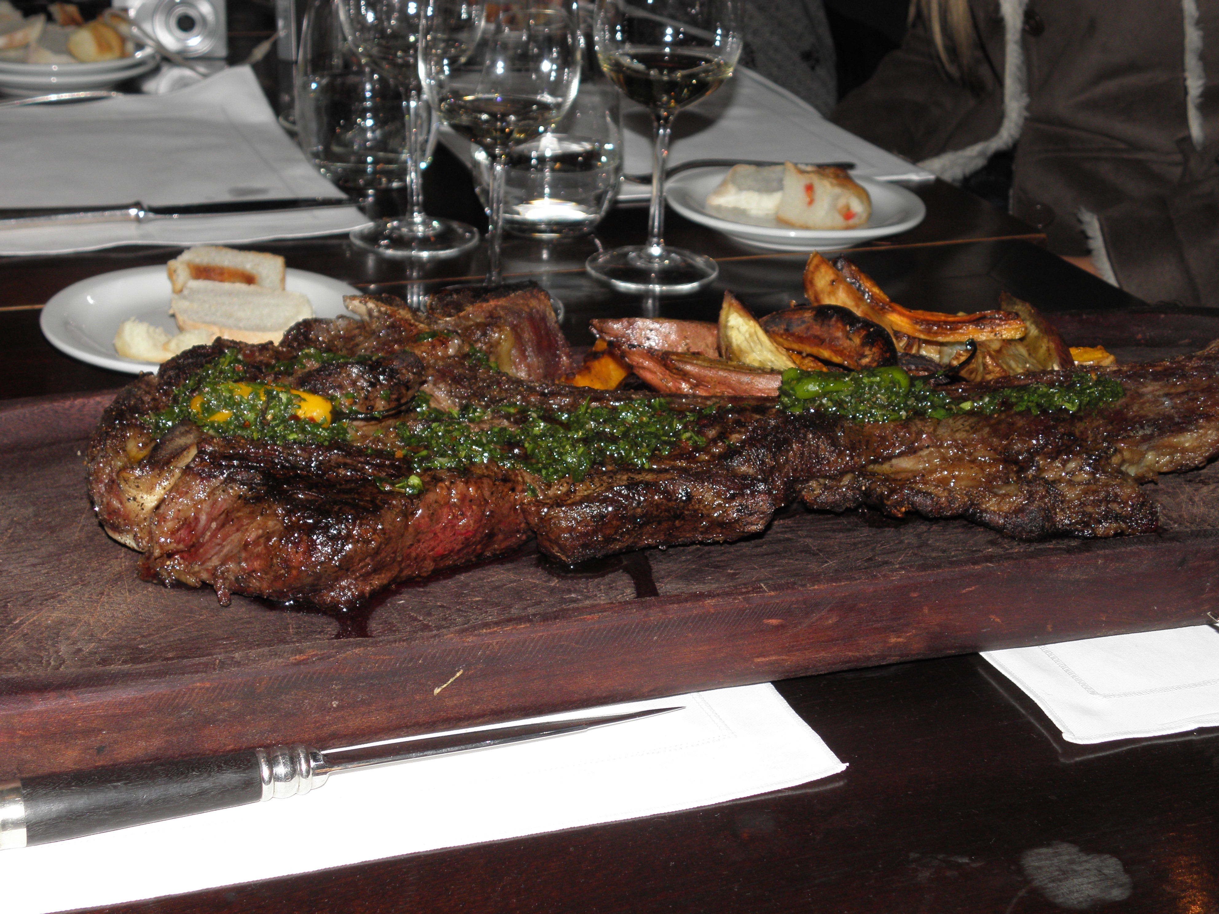 Na hora do prato principal queríamos experimetar a costela de cordeiro que é a especialidade da casa assada em um fogão a lenha.
