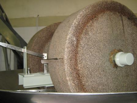 A massa resultante da maceração é submetida a uma prensagem, para que uma maior parte de azeite e água (a azeitona tem de 35% a 55% de água em sua composição) seja liberada.