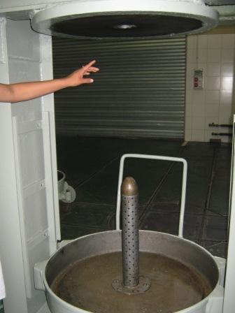 Para separar o azeite da água, é realizada a decantação. Aqui, o azeite já ocorre em seu estado final, restando apenas uma filtragem para eliminar os resíduos da massa de azeitona.