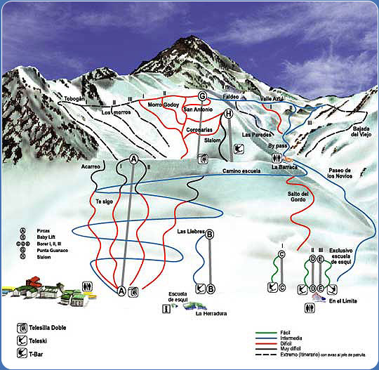 A estrada atravessa desfiladeiros estreitos, onde faixas de rochas de diferentes cores decoram as encostas da Cordilheira. A cerca de 65 km de Uspallata fica a estação de esqui Los Penitentes. Ela tem 21 pistas das mais fáceis a mais difícil, a Las Paredes. Mesmo no verão as pistas funcionam nos finais de semana e você poderá desfrutar a fabulosa vista dos vales e montanhas.
