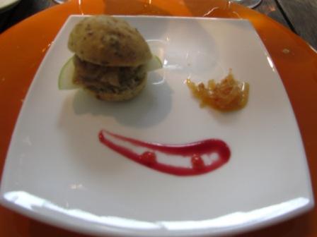A quarta foi uma torrada de brioche com carne de porco e queijo cremoso.