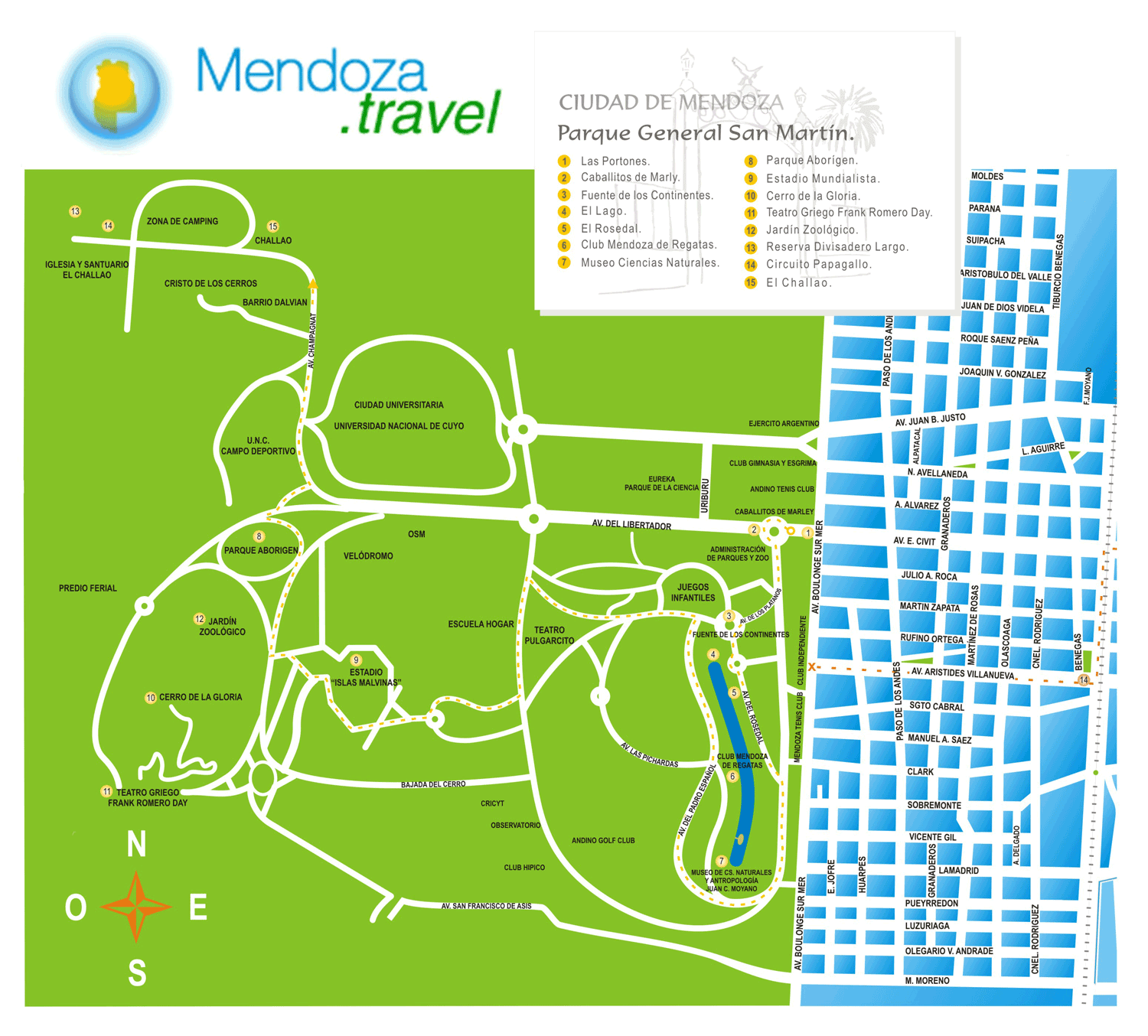 Dentro do parque fica a Universidade de Cuyo, que é como se fosse a nossa Cidade Universitária, o Estádio Malvinas Argentinas e um jardim de rosas com mais de 1000 espécies.