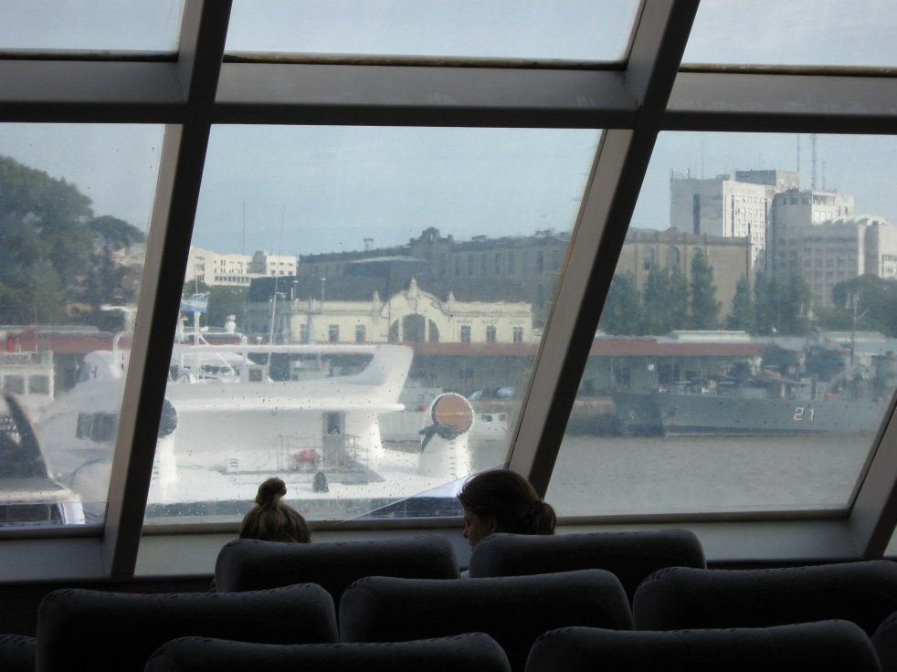 Saímos com uma hora de antecedência, pois é preciso despachar a bagagem e não há poltronas marcadas. Além disso, é preciso passar por duas imigrações: a Argentina que carimba sua saída do país e a Uruguaia que carimba a entrada. Guarde os comprovantes para não ter que pagar uma multa na volta. Dentro do buque há shows, lanchonetes (aceita pesos ou dólares, mas o troco é sempre em pesos). Há um free shop que abre 10 minutos após o embarque e fecha 10 minutos antes do desembarque.