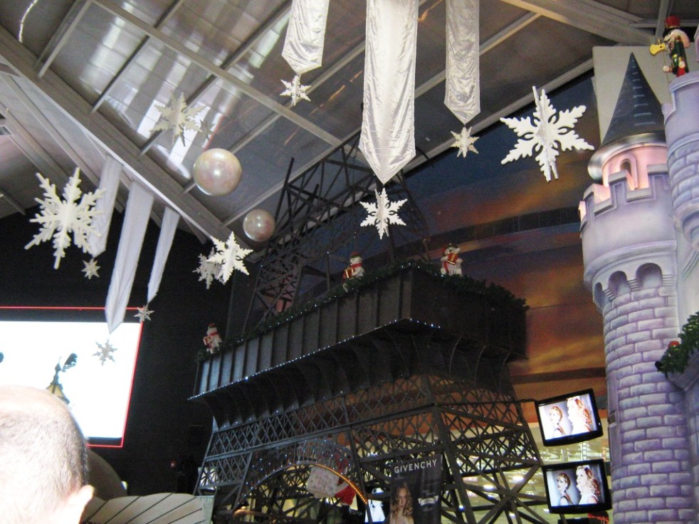A decoração é muito bonita e lembra bastante os outlets de Miami, principalmente na época de Natal.