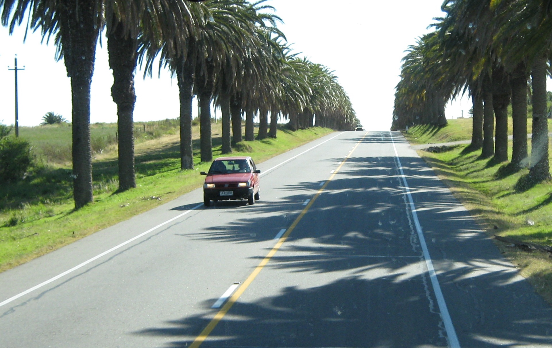 O caminho é muito bonito e não vale dormir. No início a estrada é cercada por palmeiras e logo após avistam-se os pastos. Dizem que no Uruguai há 4 vacas por habitante. Deve ser verdade, pois a paisagem que mais se vê no caminho é esta: