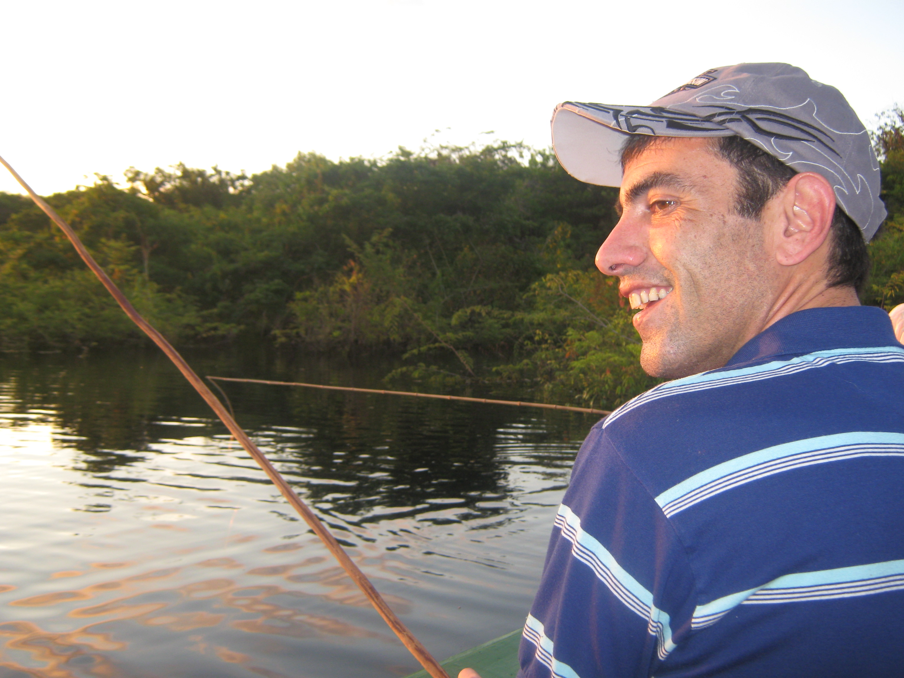 Saimos da comunidade e seguimos pelo rio Negro até a entrada de um igarapé tranquilo, local preferido pelas piranhas e jacarés, segundo nossos guias Germano e Chiquinho.
