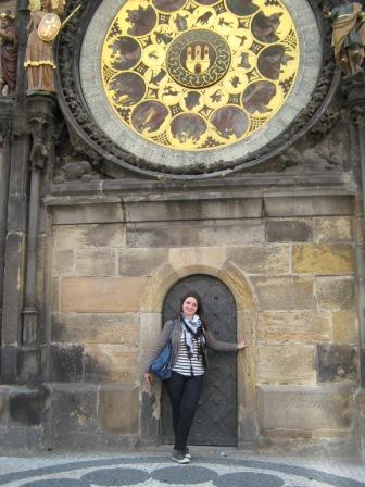 O calendário sob o mostrador do relógio é uma réplica de uma pintura do checo Josef Mánes, produzida em 1886. Nesta peça está representado todo o conhecimento astronômico da época, assim como 12 cenas representando as quatro estações climáticas que, ao mesmo tempo, celebram a vida rural da região da Bohêmia.