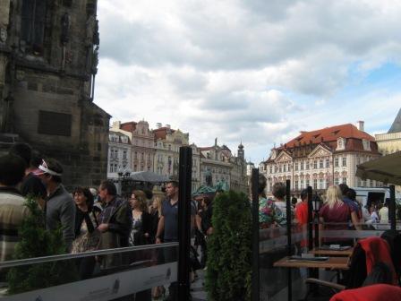 A dica é chegar com 30-40 minutos de antecedência e sentar-se em um dos cafés a frente do relógio. As mesas ficam propositadamente voltadas para a torre e você não precisa enfrentar o empurra-empurra e ainda assiste o show de camarote.