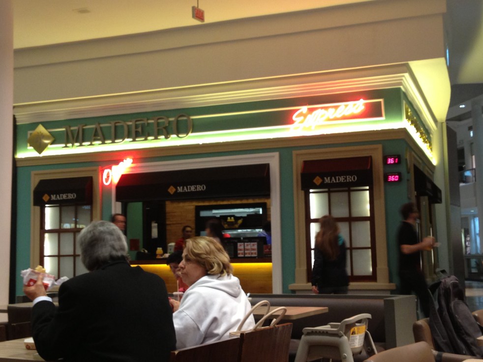 No entanto a praça de alimentação é bem legal e tem uma filial do Madero Burger que é um restaurante argentino descolado de Curitiba.