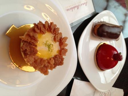 Dentre os doces amamos o de framboesa, que é uma massa de pistache com recheio de framboesas frescas e o de maracujá com recheio de manga e crocante de coco.