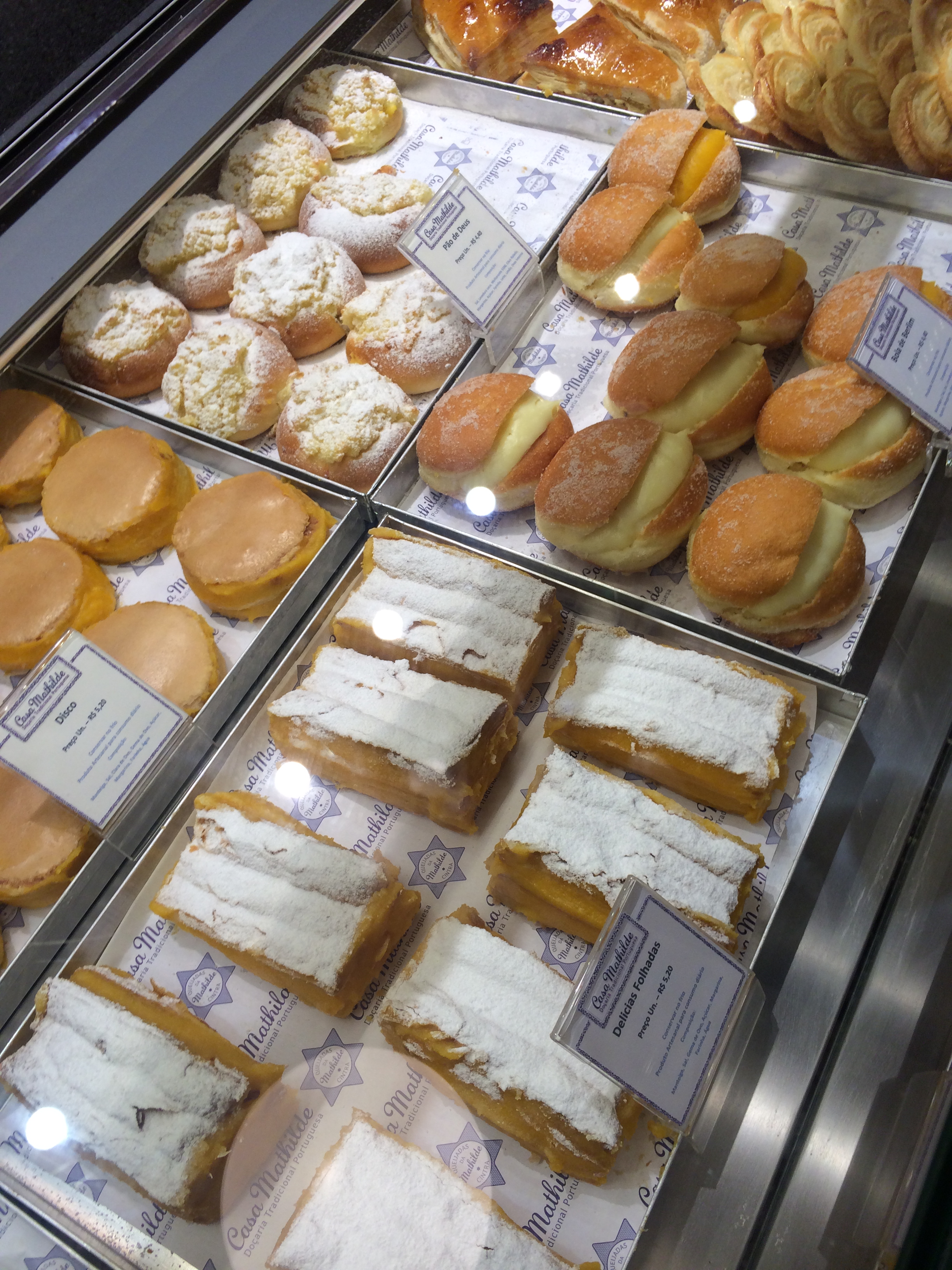 A seleção de doces é enorme, são mais de 30, entre os famosos Pastéis de Belém que o confeiteiro não vence fazer de tanto que vende, Pastel de São Bento, Travesseiros de Sintra (meu preferido!), Salame de Chocolate, Nozes Glaçadas, Toucinho do Céu entre outros.