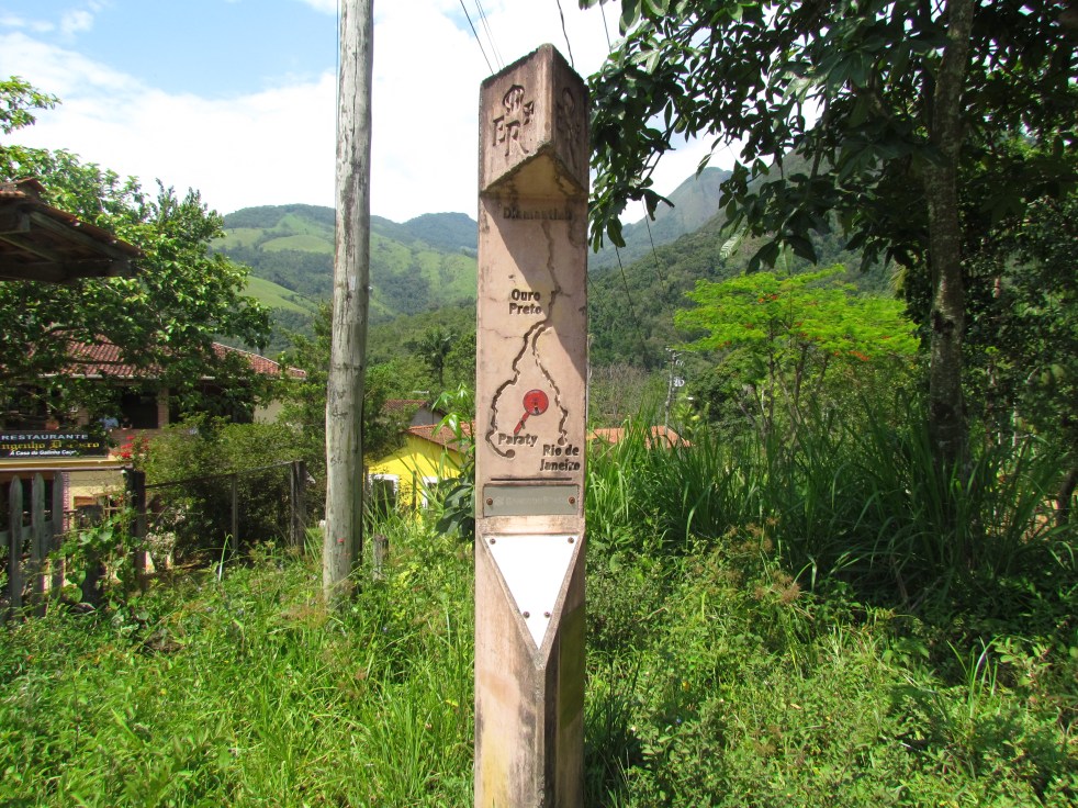Saímos cedo em direção à Estrada Paraty-Cunha que é o final da Estrada Real. Já tínhamos visitados outros trechos em Junho desse ano (Ouro Preto, Mariana e Tiradentes), mas não chegamos a descer até Paraty, que era o porto de escoamento do ouro para Portugal. Nosso hotel, inclusive, ficava ‘sobre’ a estrada, em uma parte em que ela foi desativada e a cidade construída. O portal, que hoje está na entrada da cidade, é uma réplica do portão original de entrada na Estrada Real, que fica no jardim do hotel. A sede da pousada era o posto policial de fiscalização do ouro!