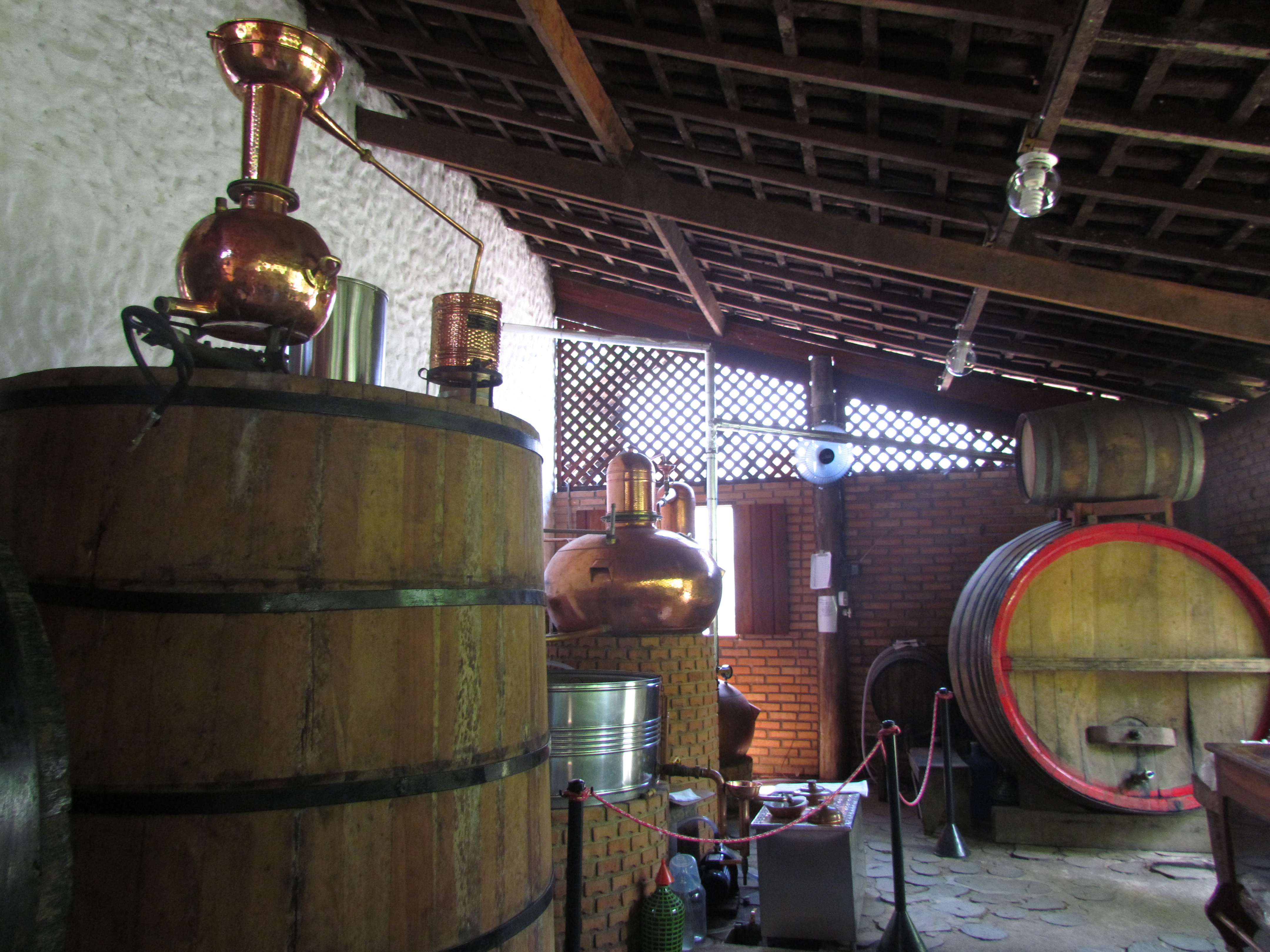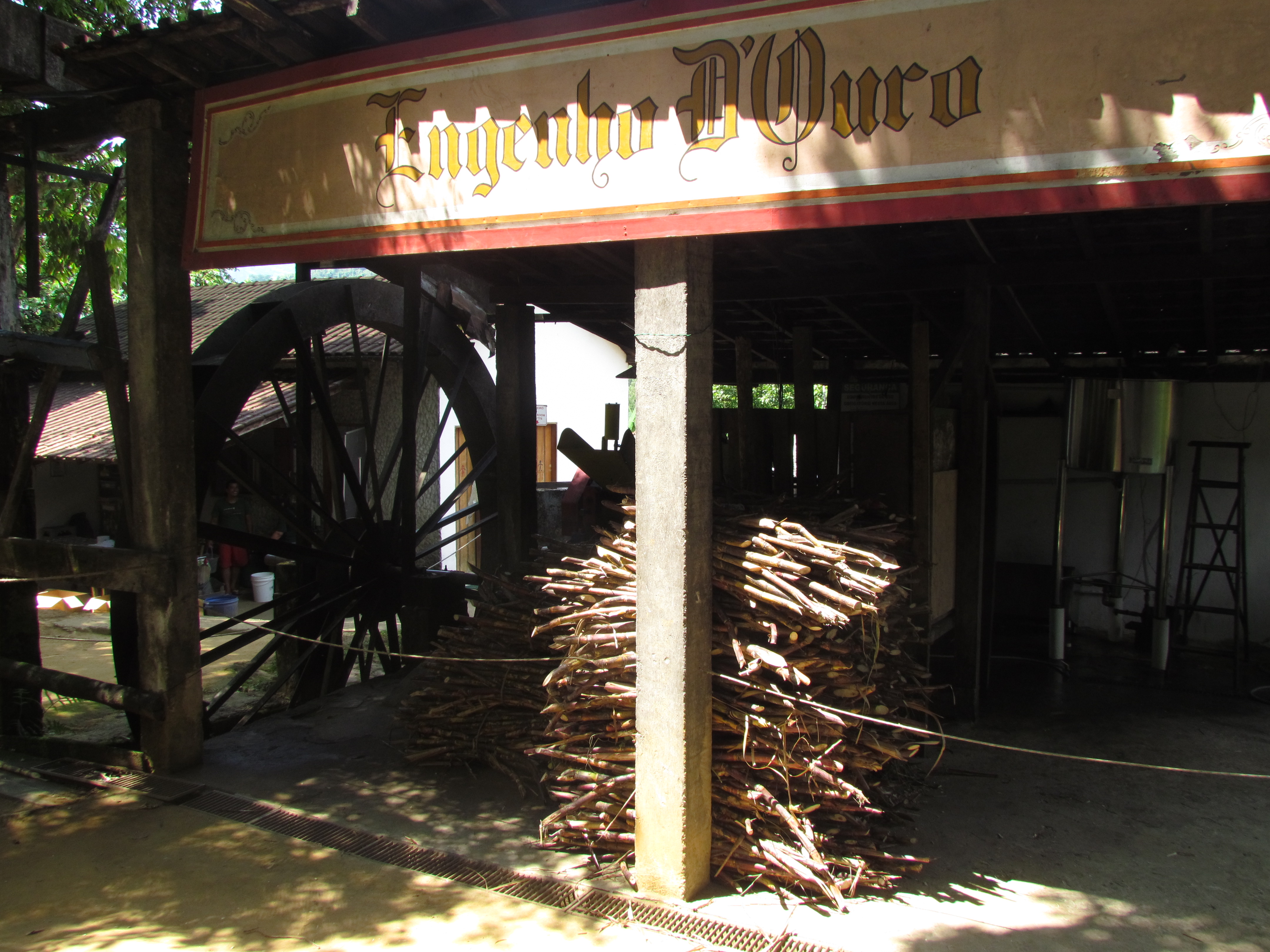 Passamos a manhã, fomos ao Alambique Engenho D’ouro, que fica ao lado da cachoeira de frente à Igreja da Penha, fazer degustação de cachaças artesanais e visitar o processo de fabricação – depois de tirar o suco da cana, ele é aquecido de 60 a 85 graus (conforme o teor alcóolico desejado).