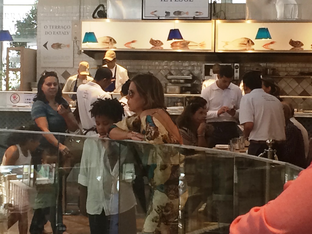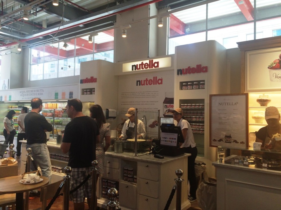 A dica se o lugar estiver lotado quando você chegar é comprar umas mussarelas e tomar uma taça de vinho no bar do térreo enquanto espera o lugar esvaziar um pouco. Outra dica se não quiser pegar as filas dos restaurantes é fazer um lanche com as fogazzas da padaria, cujas mesinhas esvaziam rapidamente. O Bar de Nutella acabei nem provando porquer eu gosto de novidades e quando cheguei lá eles vendiam pão com nutella e crepe de nutella com morangos.