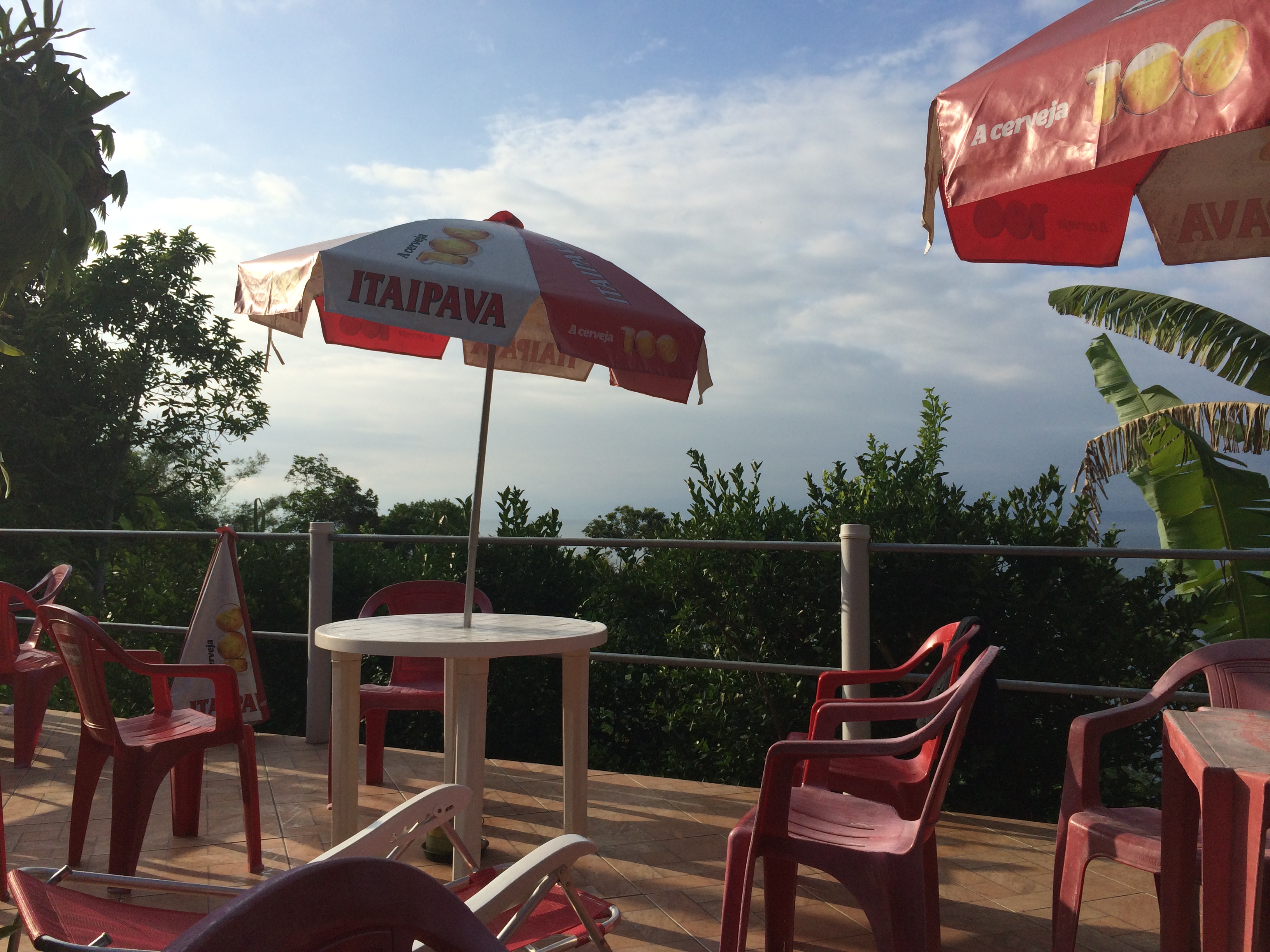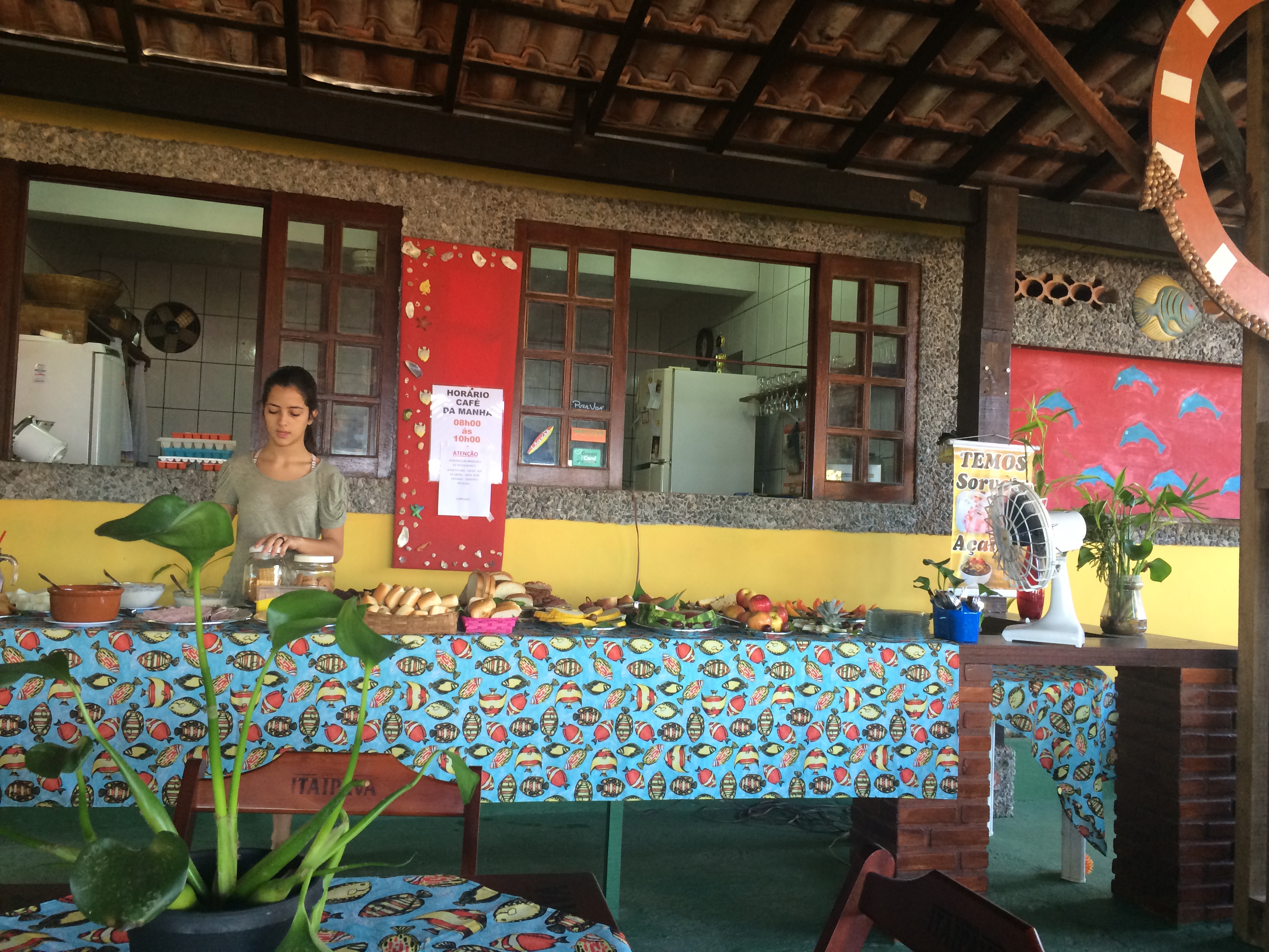 Lá tínhamos café da manhã completo incluso na diária e o bar/ restaurante ficava aberto das 12:00 às 19:30 com comida caseira deliciosa e os típicos petiscos de praia: porções de lula, camarões, pizza e bebidas como sucos naturais, água, caipirinha e cerveja e por um preço super camarada.