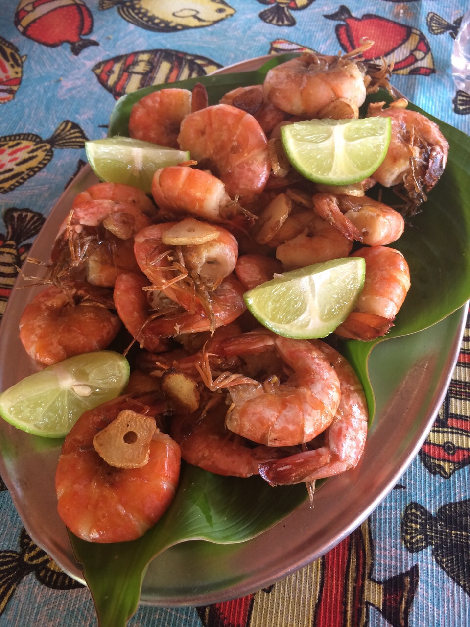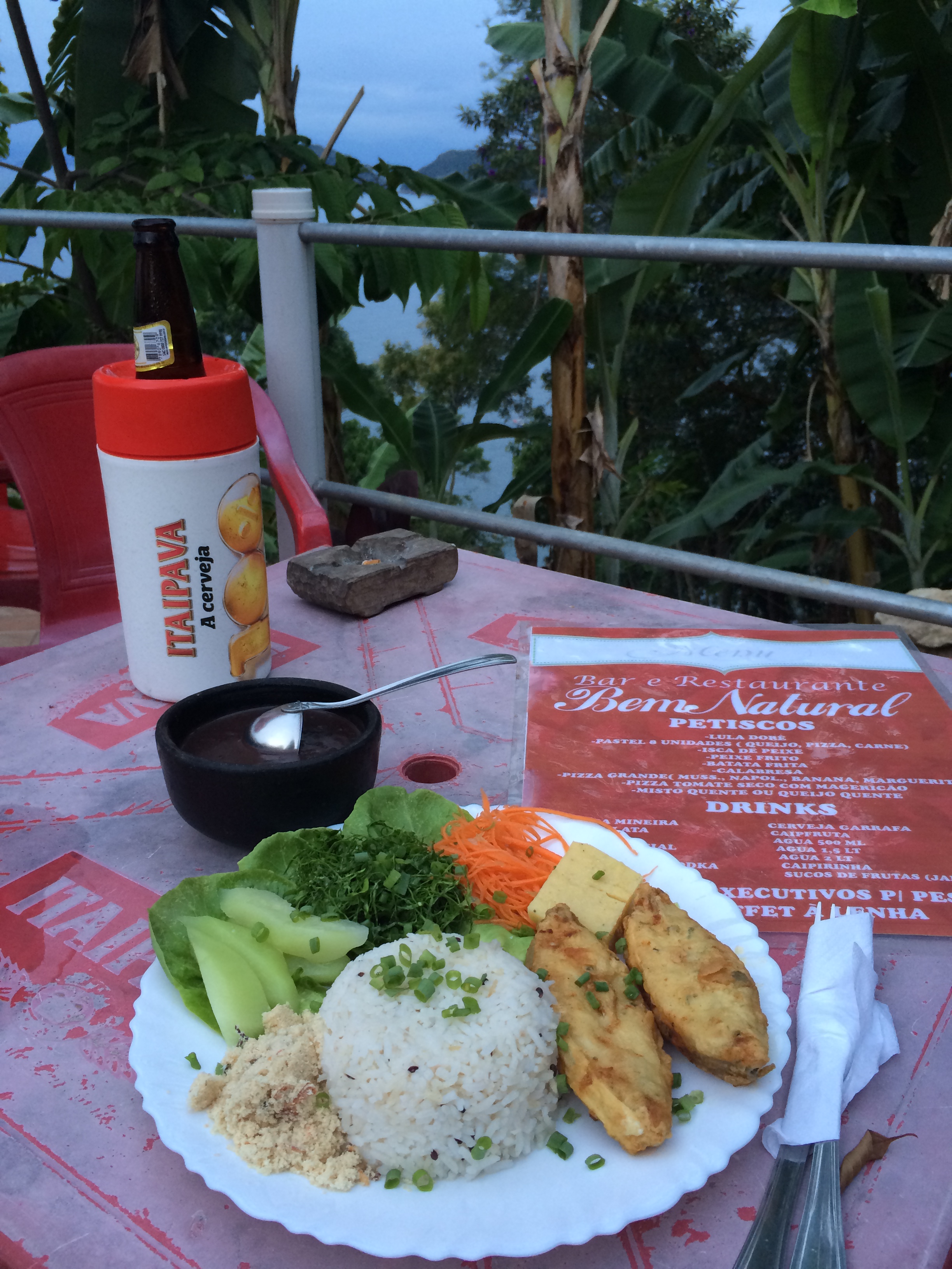 Comemos quase todos os dias na nossa pousada e uma vez almoçamos na Pousada Convés com um píer incrível com espreguiçadeiras e um visual maravilhoso. A comida era muito boa também.
