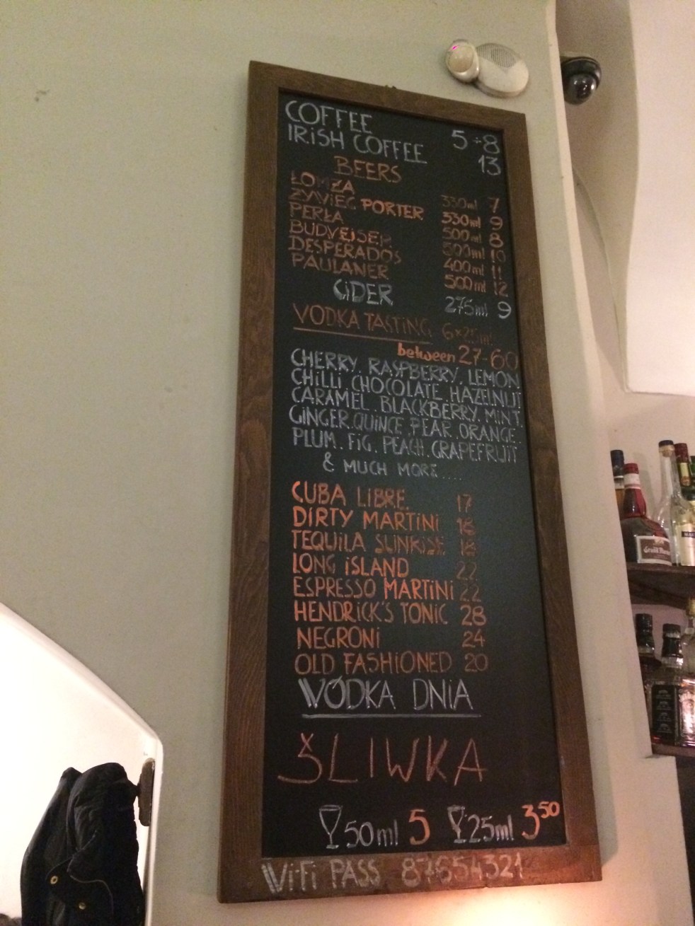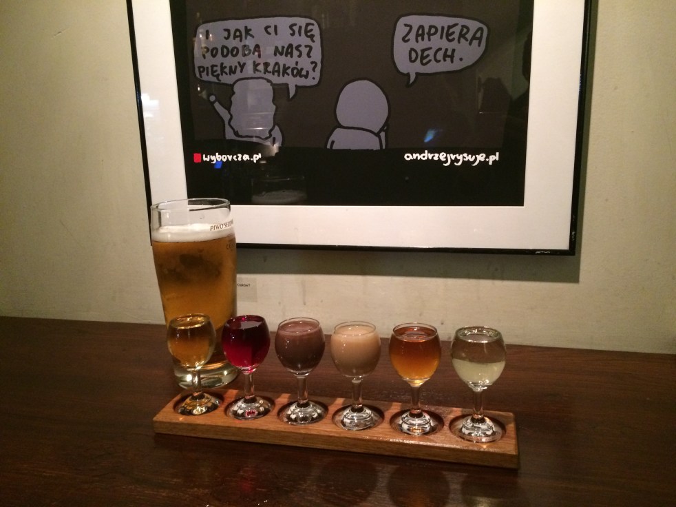 Na volta, fizemos o caminho pela Swietego Kryza e dobramos à esquerda na Mikolajska para começar a noite com pé direito no Wodka Bar (Mikolajska 5) provando a famosa Vodca em diversas variações, dizem que há mais de 120!