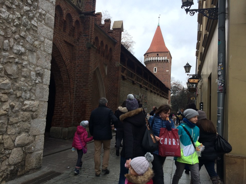 De ali passamos pela Porta da Muralha (Barbacan) para a rua Florianska uma das principais ruas de comércio do centro antigo. Aliás todo o centro antigo é uma grande área comercial e as ruas mais bonitas que fazem parte da Rota Real que vai até o Castelo de Wawel, nessa ordem: Florianska, Rynek e Grodzka, com as inúmeras lojinhas de porcelana polonesa (aquelas banquinhas e azuis), de artesanato até desembocar no Castelo de Wawel.