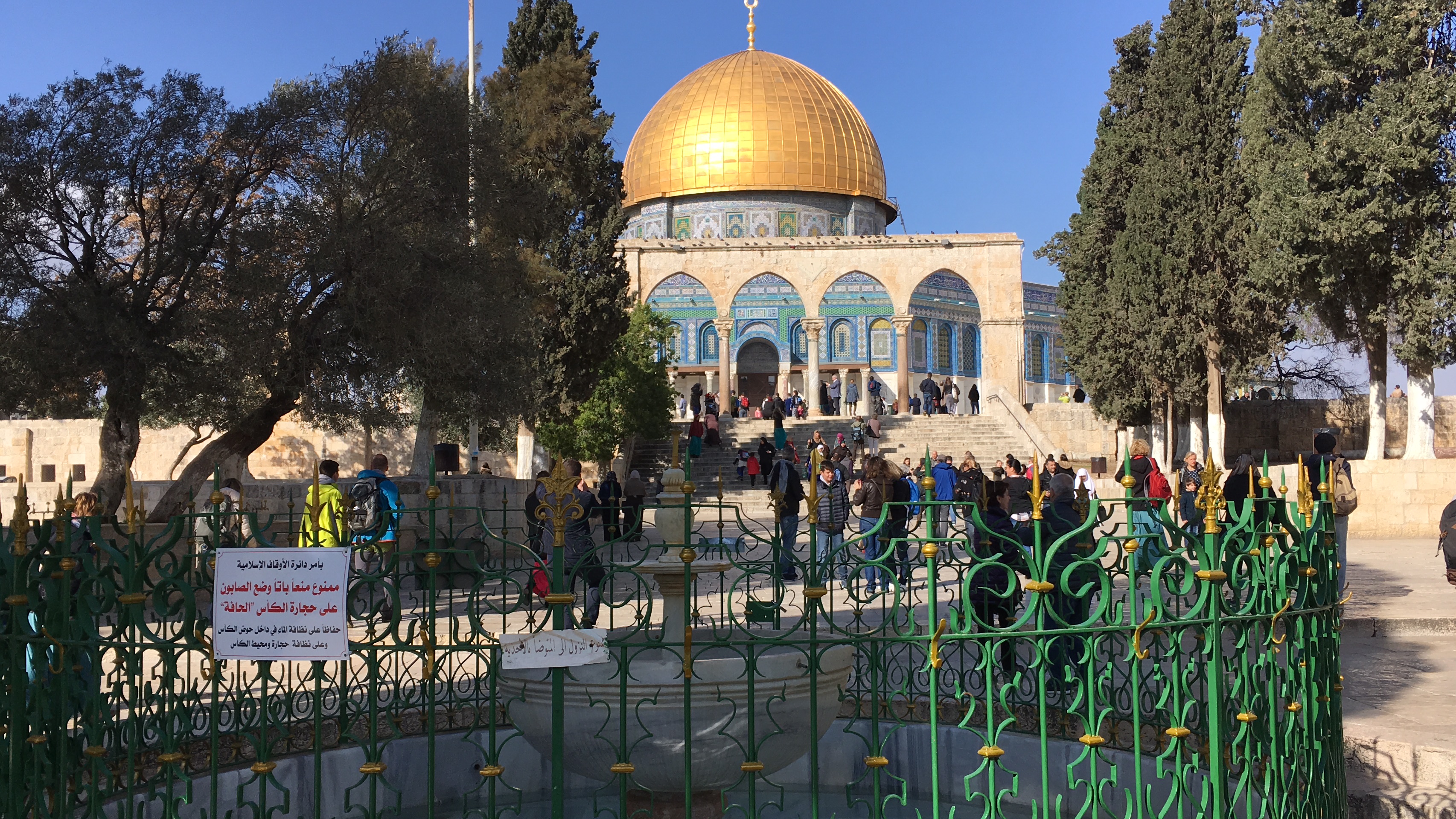 Essa área é muito disputada por judeus e muçulmanos. Os judeus defendem o lugar ser ali onde está a pedra de sacrifício de Abraão e os muçulmanos o reivindicam por estar ali a pedra com a pegada de Mohamed antes de sua ascensão aos céus.