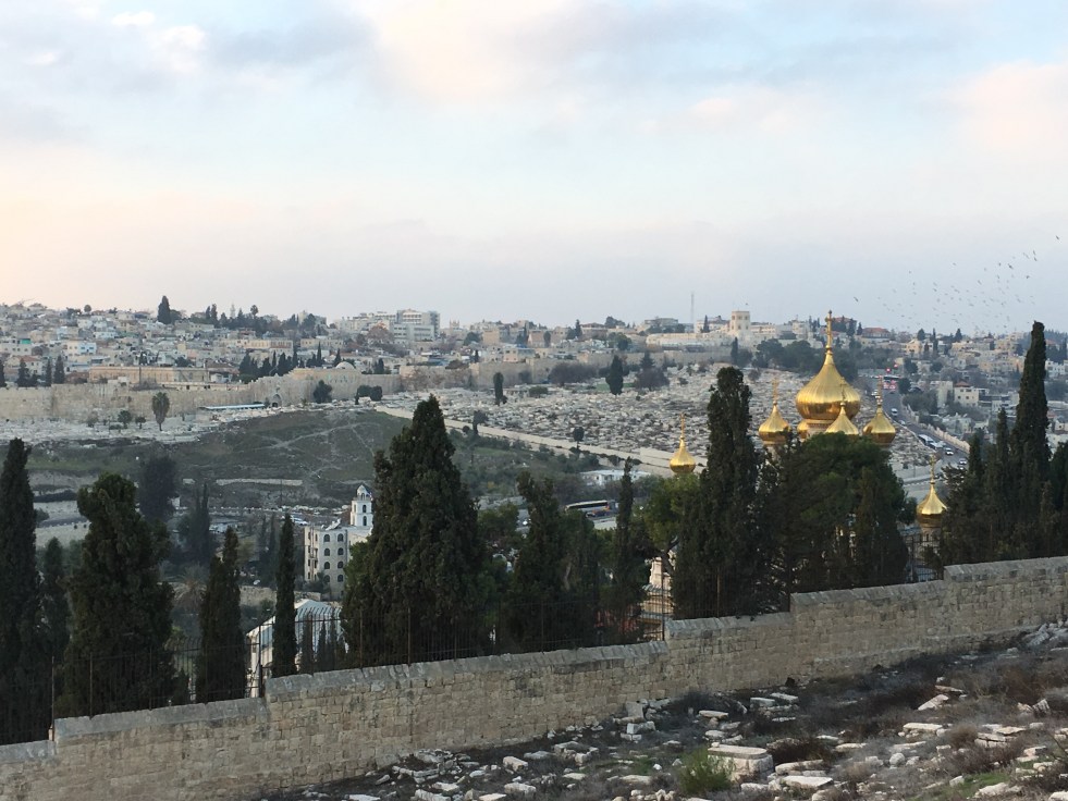 Descendo um pouco mais o Monte, do lado direito chegamos a um mirador que tem vistas incríveis da cidade antiga de Jerusalém, da muralha, do Monte do tempo e das torres de uma linda Igreja Ortodoxa Russa.