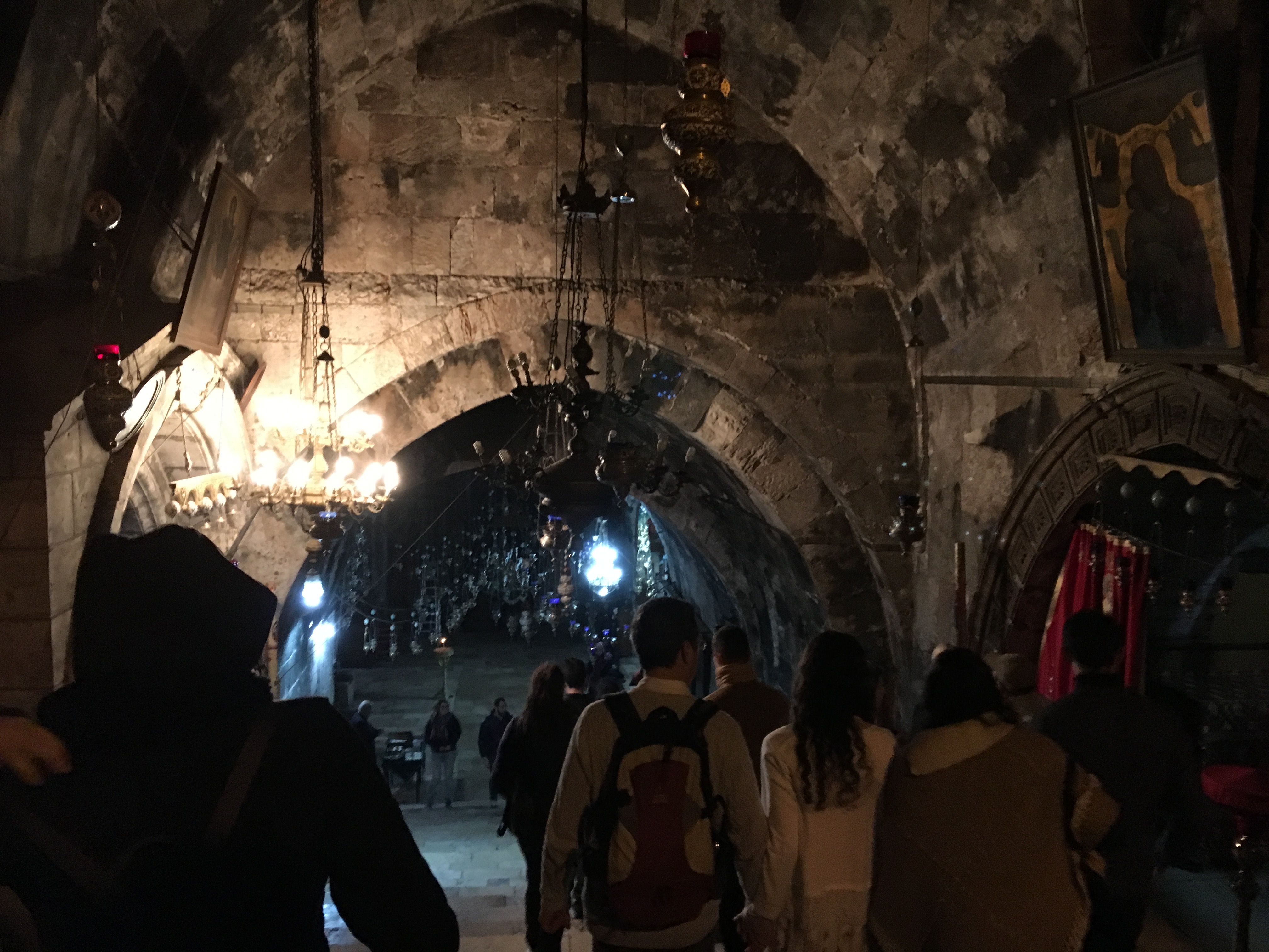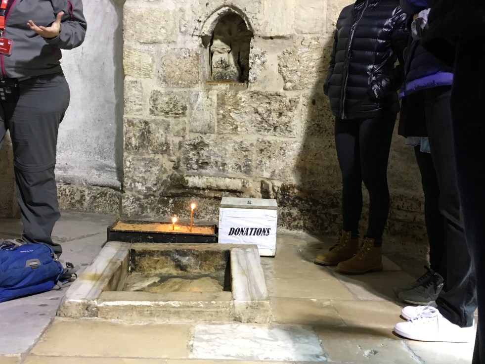Nossa primeira parada foi na Igreja da Ascenção, o lugar onde Jesus Cristo ressuscitou e ascendeu aos céus. A Igreja da Ascenção foi construída em cima da pedra onde está impressa a pegada de Jesus.
