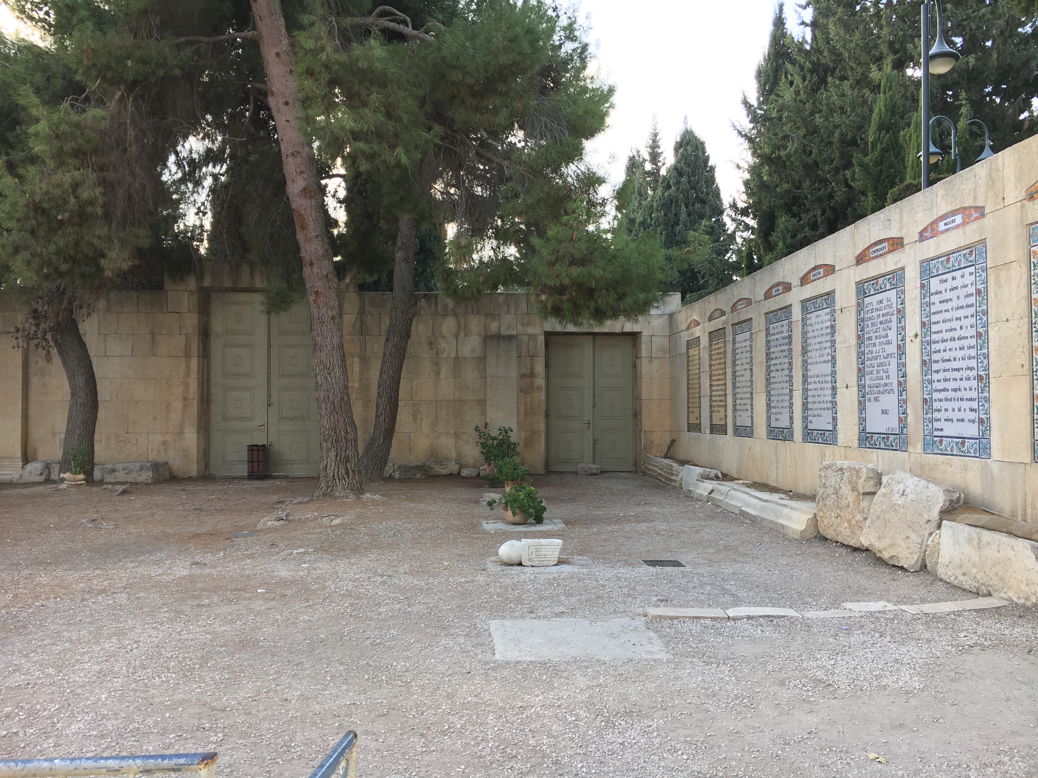 Do jardim tem-se a vista do Monte Zion onde acredita-se que Jesus realizou a última ceia e da porta cidade antiga por onde Jesus desceu até o Monte das Oliveiras para sua última oração em que pediu a Deus se poderia ser poupado do sofrimento.