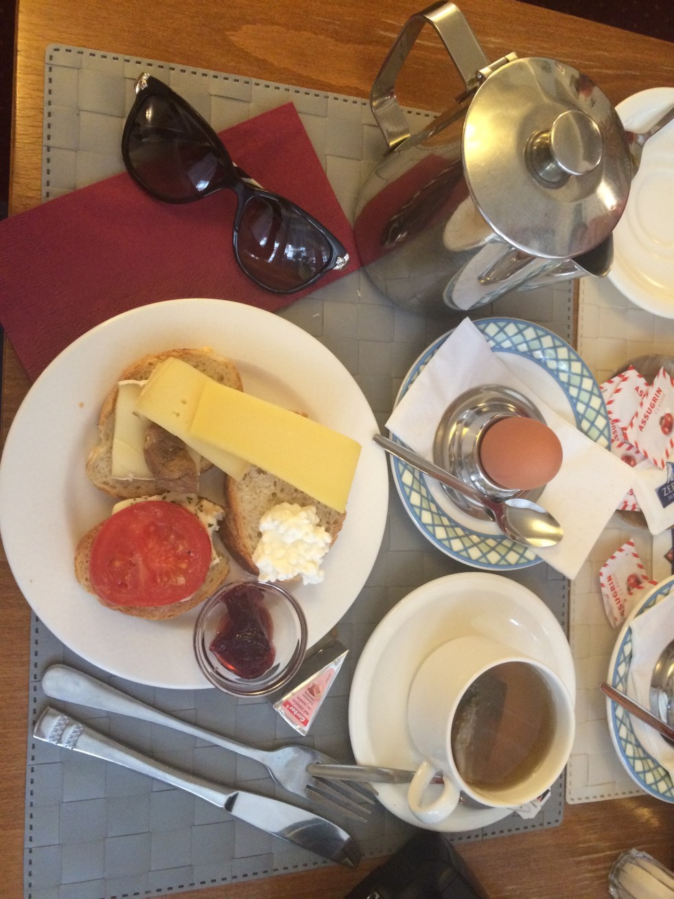 Quarto espaçoso com varanda e excelente café da manha com Birchermüsli ou “overnight oats” típico da Suiça.