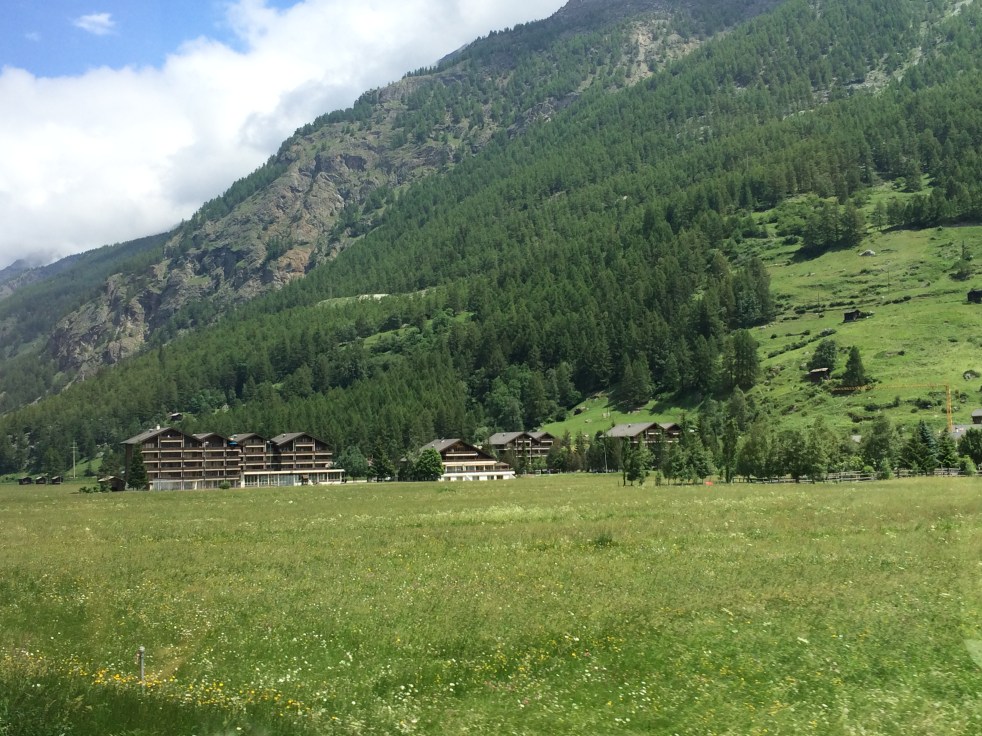 Aí é que a paisagem fica mais bonita ainda com os Alpes de plano de fundo através dos imensos janelões panorâmicos do trem. Já dá para avistar o Matterhorn!