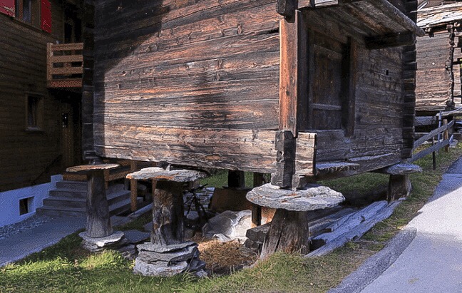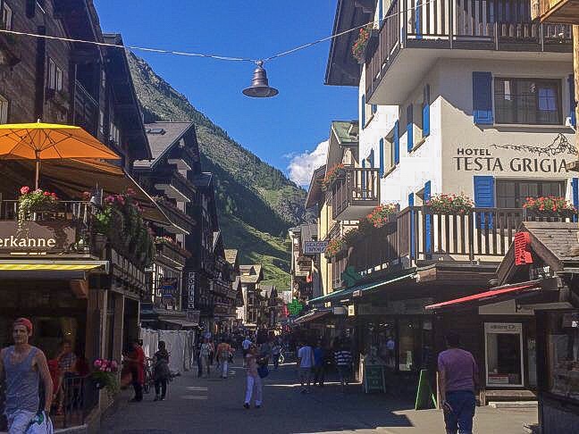 Em uma de suas travessas, na Hinterdorfstrasse, estão vários chalés de madeira originais, antes de Zermatt se tornar um centro de esqui. Os chalés eram construídos sobre toras de madeira para ficarem em um plano mais elevados e protegidos de animais.