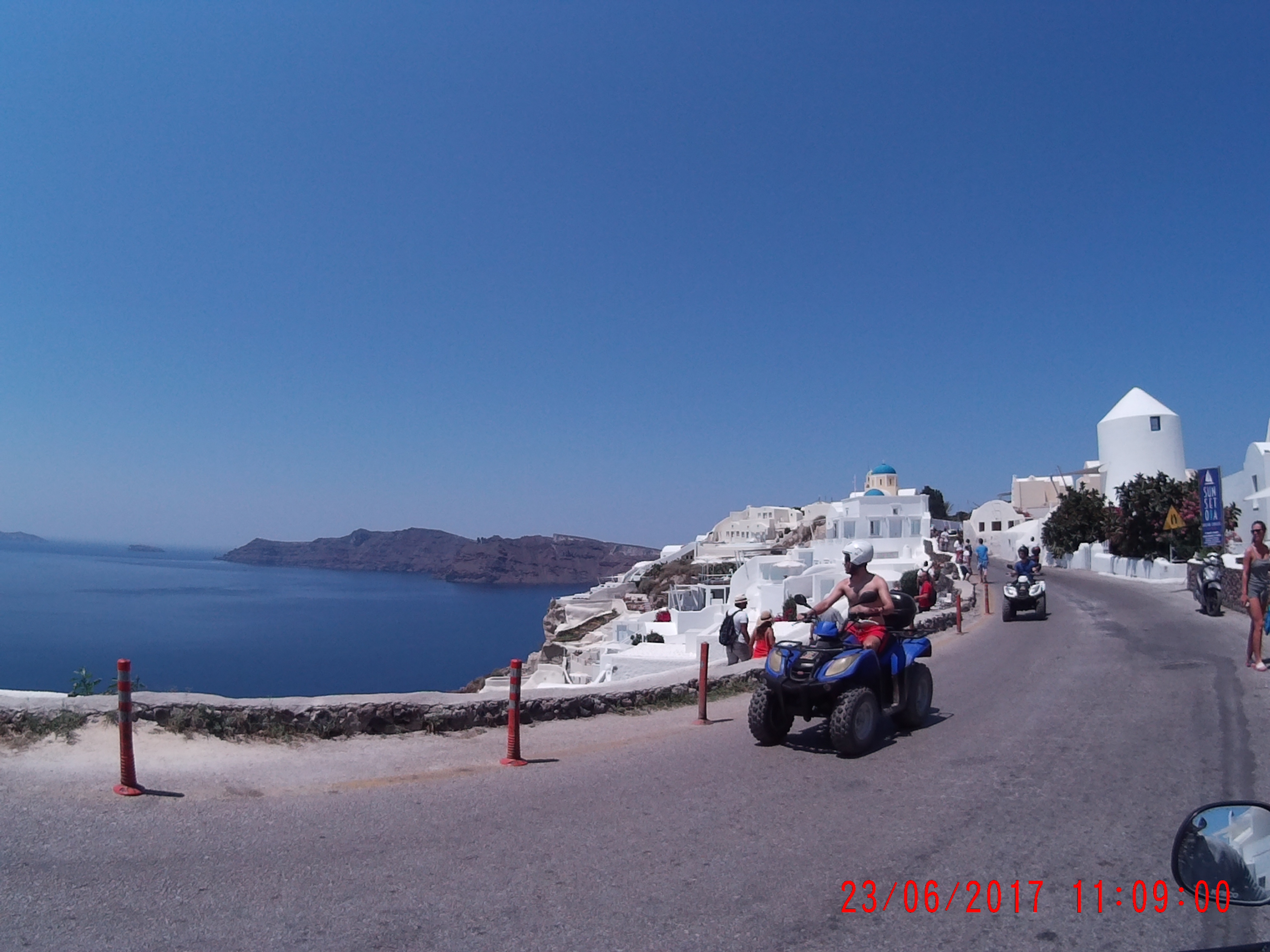 Novamente com o quadriciclo fomos descobrir o centro-oeste e o sul da ilha. No oeste está a capital, Fira, também com vista para o mar, é um excelente lugar para encontra hospedagem mais em conta.