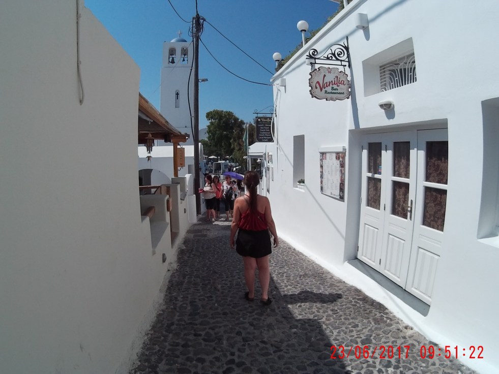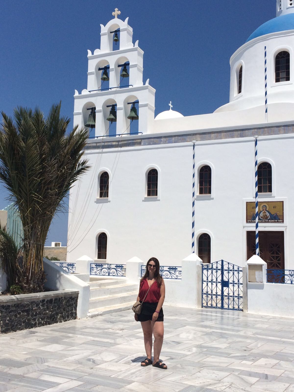 Passamos por várias pracinhas, lojinhas e igrejinhas, uma mais charmosa que a outra. Aliás, Santorini é conhecida por ter 300 igrejas distribuídas em seus 73km2.