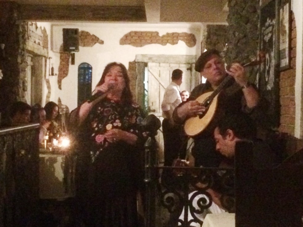 Lá pelas 21:00 começa o show de fado, são dois cantores que se intercalam e dois violeiros que tocam guitarra portuguesa. Dá até para fazer pedidos.