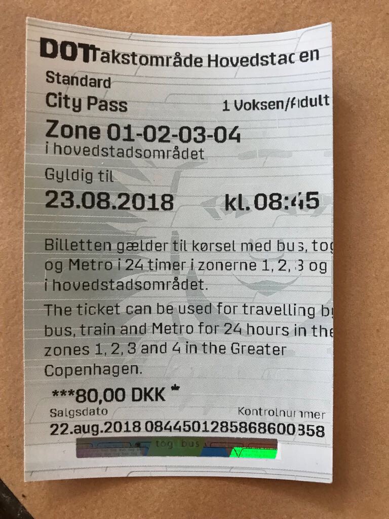 Ao chegar no aeroporto seguimos as placas em direção ao metrô (que fica dentro do aeroporto) e compramos o City Pass de 24h, que é o bilhete turístico que te dá direito a usar ônibus, trem e metrô ilimitadamente por 24 ou 72 horas. Vale muito a pena porque um City Pass custa 80 dkk (12€) e só um bilhete ida e volta do metrô ao centro da cidade custa 60 dkk (9€).