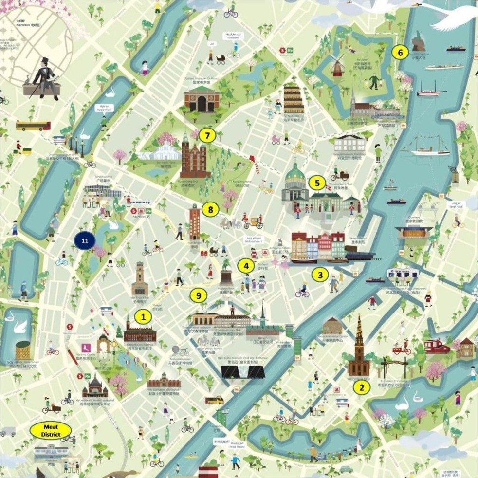 A verdade é que Copenhagen é bem compacta e é possível, com boa disposição, fazer tudo a pé. As principais atrações estão concentradas no Centro, a mais distante são a Pequena Sereia (6), os Castelos de Amalienborg (5) e Rosenborg (7) e Christiana (2).