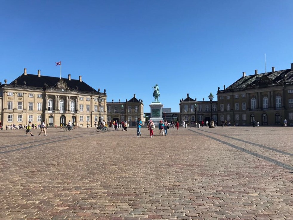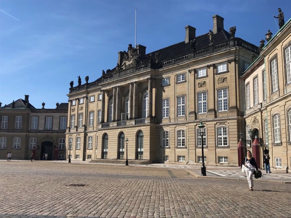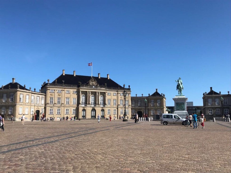 A 10 minutos a pé, caminhando pela Orla do Canal chegamos ao Palácio de Amalienborg, a residência de inverno da família real dinamarquesa.
