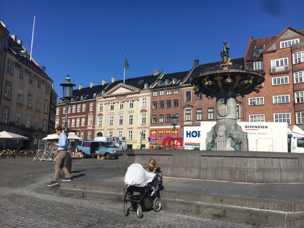 A primeira praça é a Nytrov (mercado novo) e a Gameltorv (mercado velho), duas praças que formam um único espaço aberto.