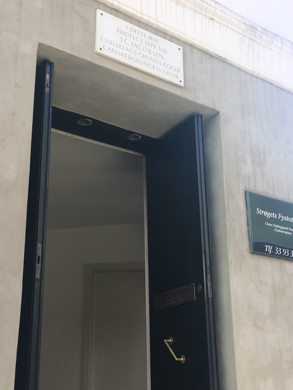 A partir da praça seguimos pela rua Brolaeggerstraede onde está a casa que nasceu J.C. Carslberg, fundador da fábrica de cervejas mais famosa da cidade.