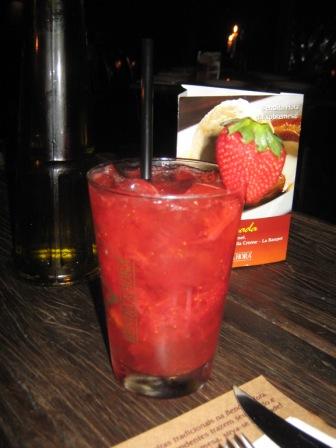 Começamos com uma caipirinha de saquê e uma beringela ao forno de comer de joelhos.