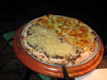 Depois pedimos a pizza de abobrinha, que é a mais famosa da casa, e a de shitake com shimegi e lascas de parmesão.