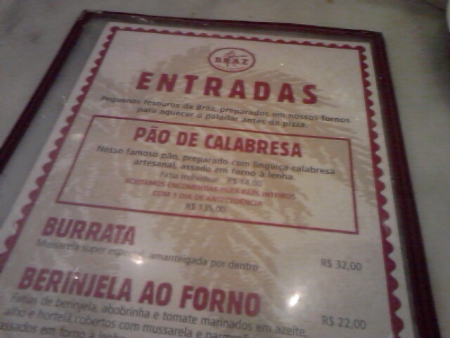 A Pizzaria Braz foi eleita pela sexta vez a melhor pizzaria de São Paulo. E não é por acaso: as entradas são um show a parte e as minhas preferidas são a burrata (R$30,00) e o famoso alto e macio pão de calabresa (R$ 13,50 a fatia).