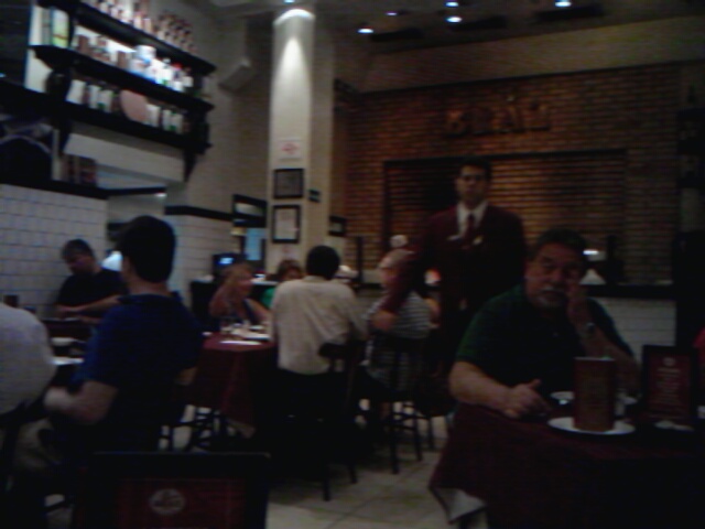 O ambiente é rústico e barulhento e lembra bem uma autêntica cantina italiana.