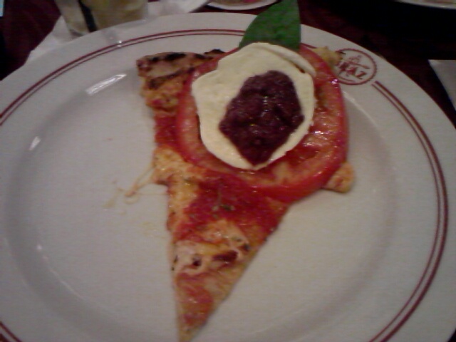 A melhor pizza, na minha opinião é a Caprese, especialidade da casa (R$ 62,00) que traz sobre o disco de bordas largas e massa média uma base de mussarela sobre a qual se dispõem grossas fatias de tomate coroadas por uma composição de mussarela de búfala, folhas de manjericão gigante e pesto de azeitona preta.