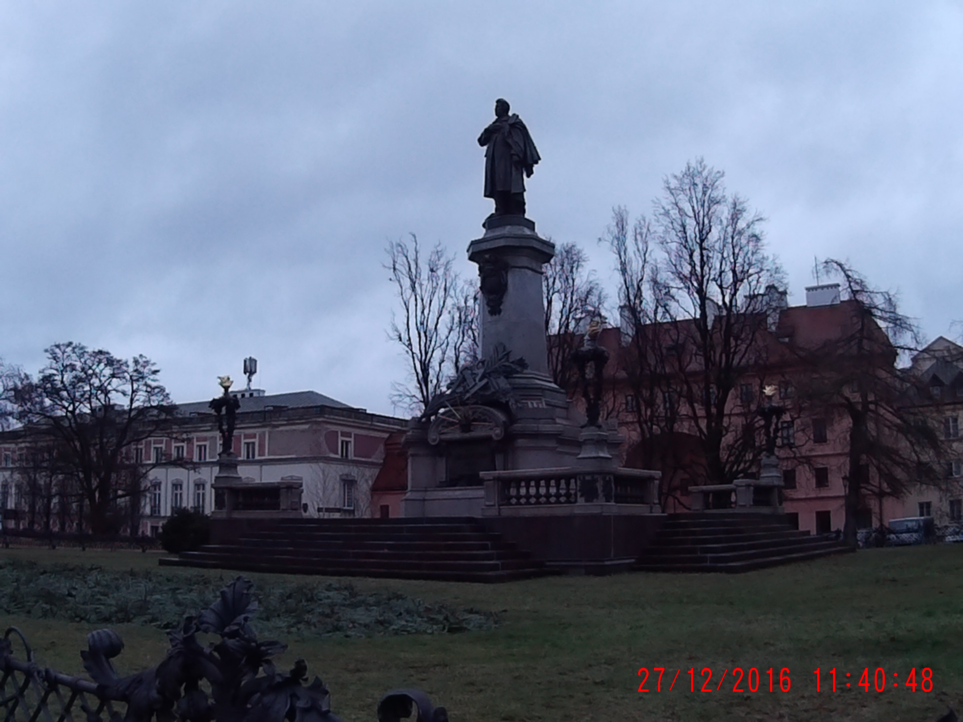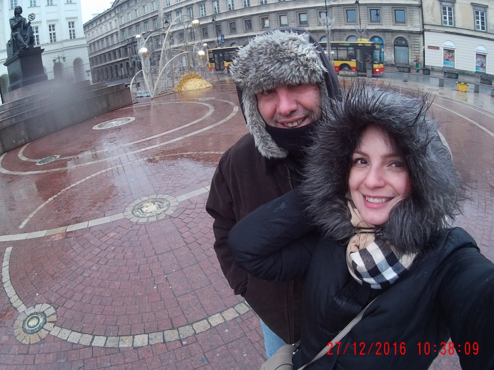 O próximo passo é uma praça super charmosa, que imagino que no verão deva ser bem florida, com a estátua de um poeta polonês famoso por lutar contra o domínio russo.