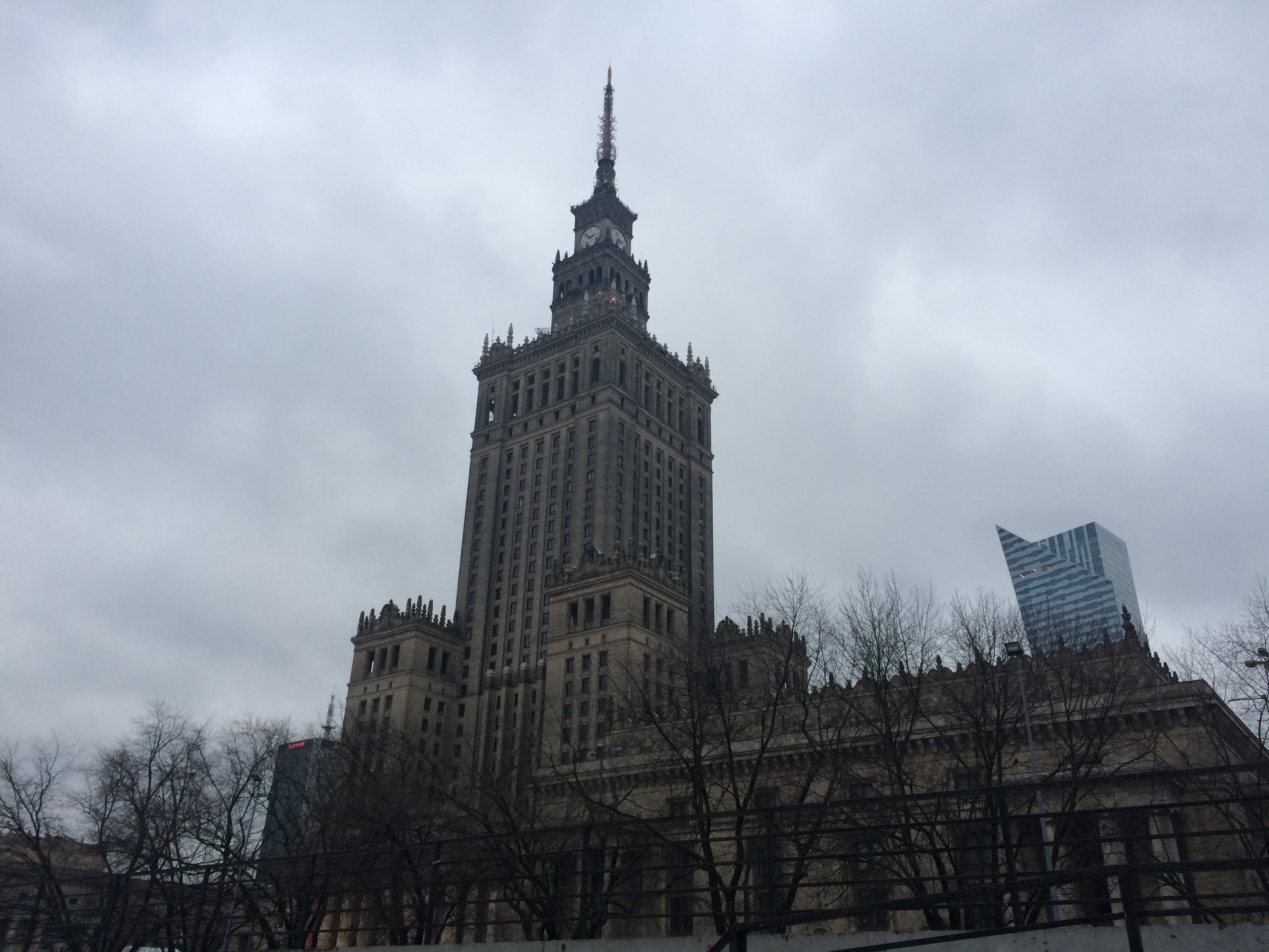 Na volta passamos pelo Palácio da Cultura e da Ciência que foi um presente de Stalin para a Polônia como um símbolo do comunismo. É lógico que os poloneses odeiam esse edifício e já pensaram em demoli-lo várias vezes.