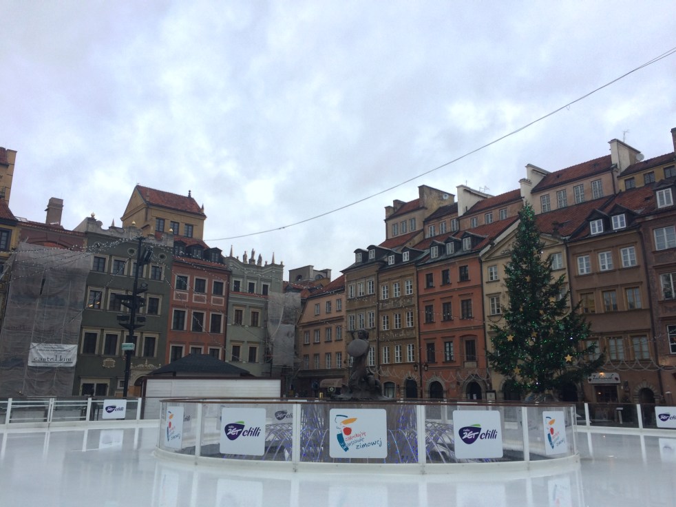Chegando à Praça da Cidade Velha (Stare Miasto) continue deliciando-se com sua arquitetura medieval digna de cinema. Como era época de Natal , além da Árvore toda decorada (a Polônia é um dos países mais Católicos do muno), encontramos um lindo Mercado de Natal (excelente para tomar vinho quente e comprar enfeites de Natal) e uma pista de patinação no gelo.
